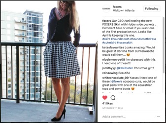 I wanted a skirt that women could wear to work, social, church, etc. so I improved the design. I made a very full, knee length, elastic waist, big deep pocket comfortable skirt! Then I wore the heck out it! The first test is to wear it in front of my husband and see what he says. He has great style. He said “you look nice, honey”. I said “Thank you! It’s a Foxers skirt” He took the first photo of me wearing the first skirt on the balcony that morning and posted it on Instagram and he said to me… (no kidding)…skirts that make your legs look skinny! I am still laughing. Bless his heart he didn’t realize that he just said my legs look fat but he was complimenting me and offering a great deal of help to anyone that wanted to make their legs look skinny!